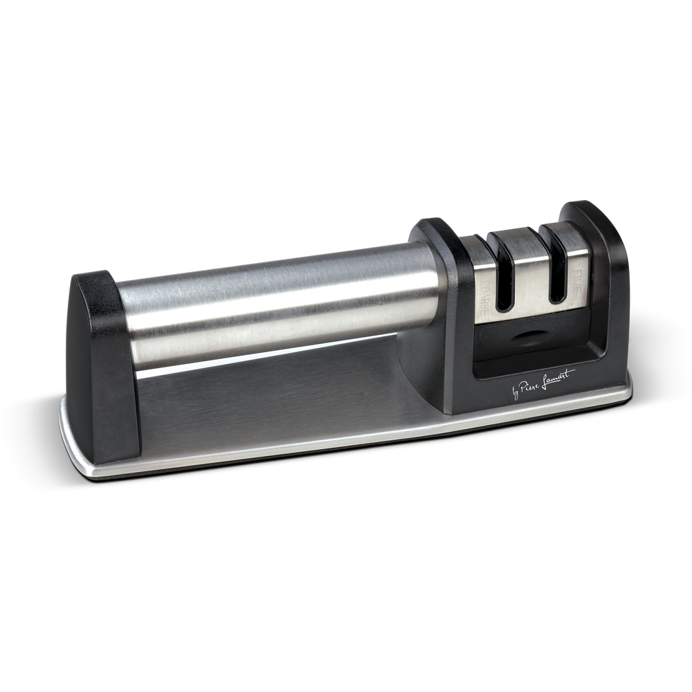 مسن السكاكين ثنائي المراحل مصنوع من بلاستيك ABS اللين مع قاعدة مقاومة للانزلاق.