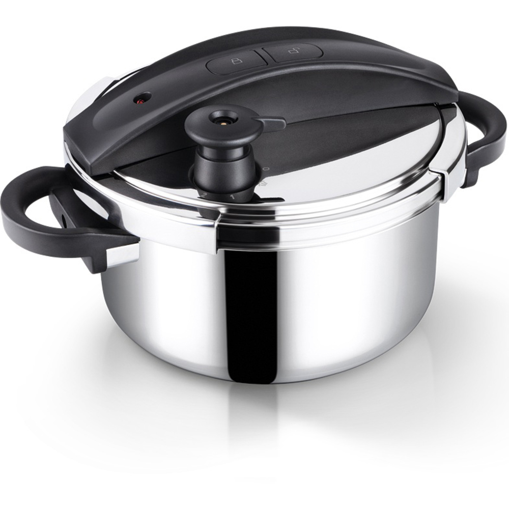 حلة الضغط 4 لترات Pression حلة الضغط Pression مصنوعة من فولاذ مقاوم للصدأ 18/10 وبلاستيك قوي التحمل غطاء سهل التعامل مفتوح باستخدام الأزرار بيد واحدة باستخدام التحكم في الضغط يمكن إعداد وجبات شهية بسرعة جدًا حلة الضغط مجهزة بصمام ضغط، وصمام أمان، وفتحة أمان للضغط الزائد ومقابض قوية لسهولة التعامل وحمايتك من الحرق حلة الضغط بقاعدتها المزدوجة مصممة للاستخدام مع جميع أنواع المواقد بما في ذلك المواقد التي تعمل بالحث